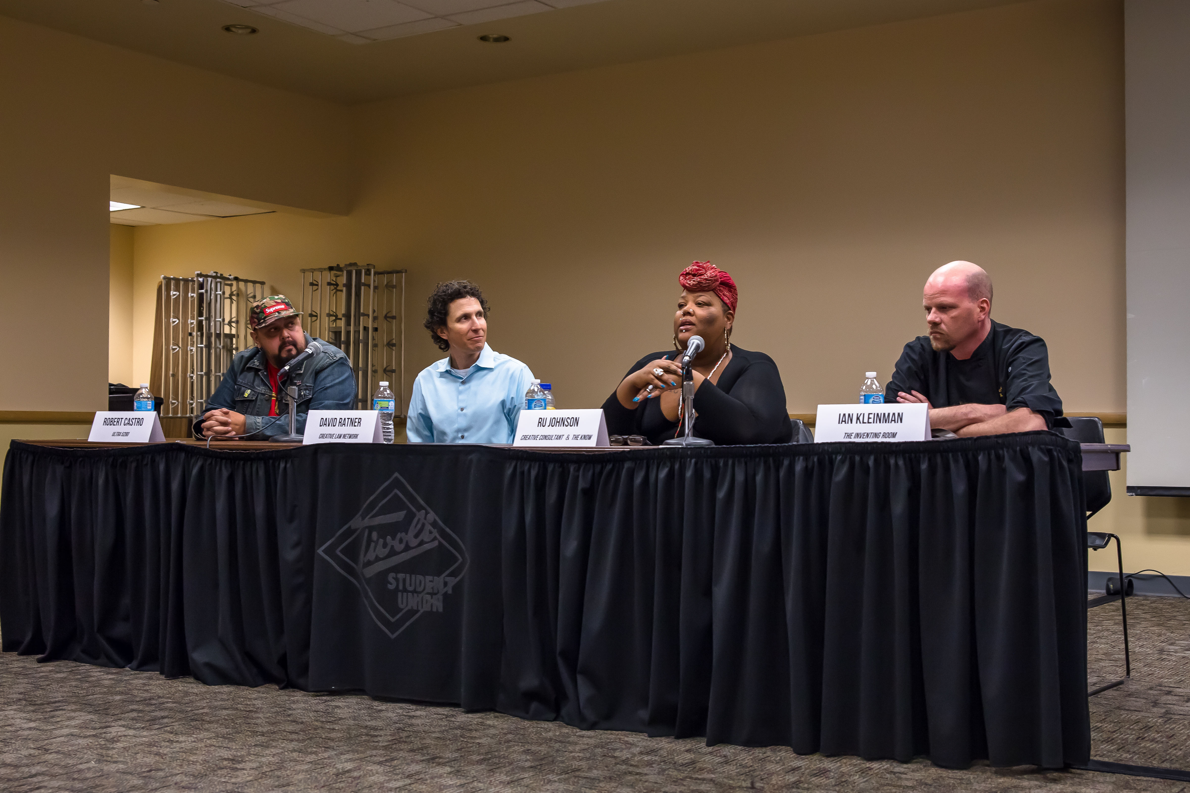 This was a fun event to produce as it incorporated various arts passions from the CU Denver Live! committee and incorporated them into an educational panel. We invited students from across various majors, and especially the College of Arts and Media, to listen to panelists Rob Castro (Ultra 5280), Ian Kleinman (The Inventing Room), Ru Johnson(writing credits include Westword and 303 Magazine), and Dave Ratner (Creative Law Network) speak about their experiences in entrepreneurship. Additionally, we partnered with the Experiential Learning Center on the CU Denver Campus to help us with the event and moderate the panel.